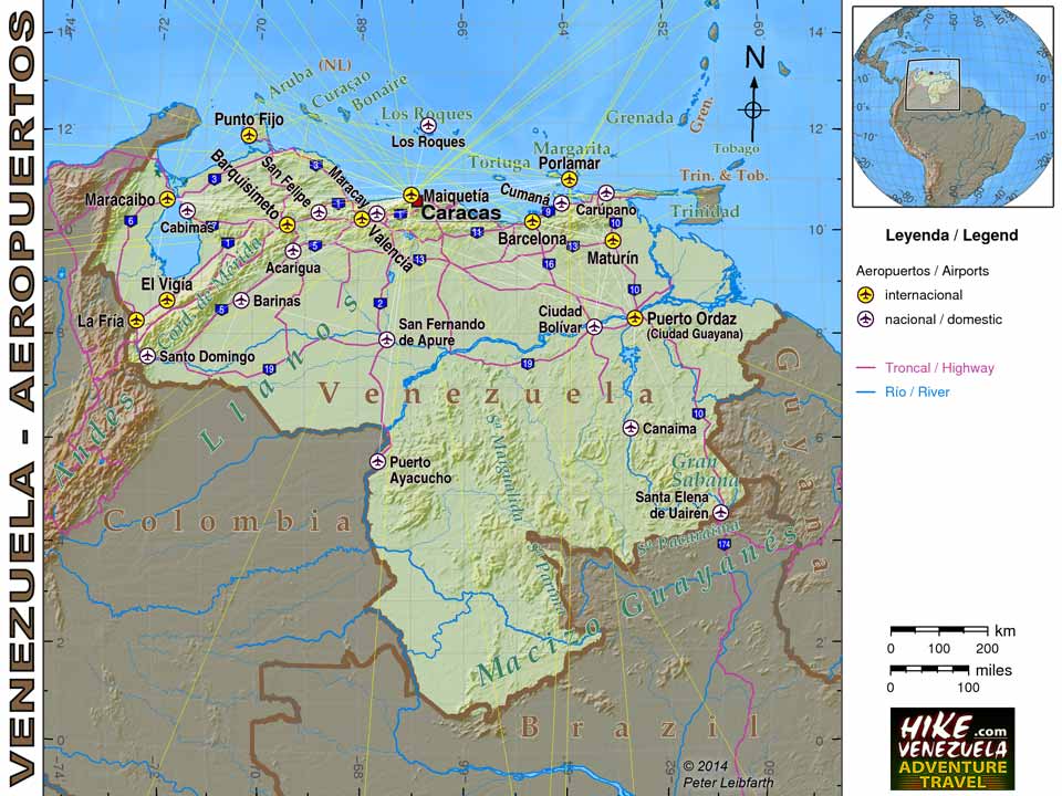 Venezuelas Fluglinien (z.B. Avior, Aeropostal, Aserca, Conviasa und Rutaca) bieten eine große Auswahl an Inlandsflügen zu zahlreichen Reisezielen des Landes.